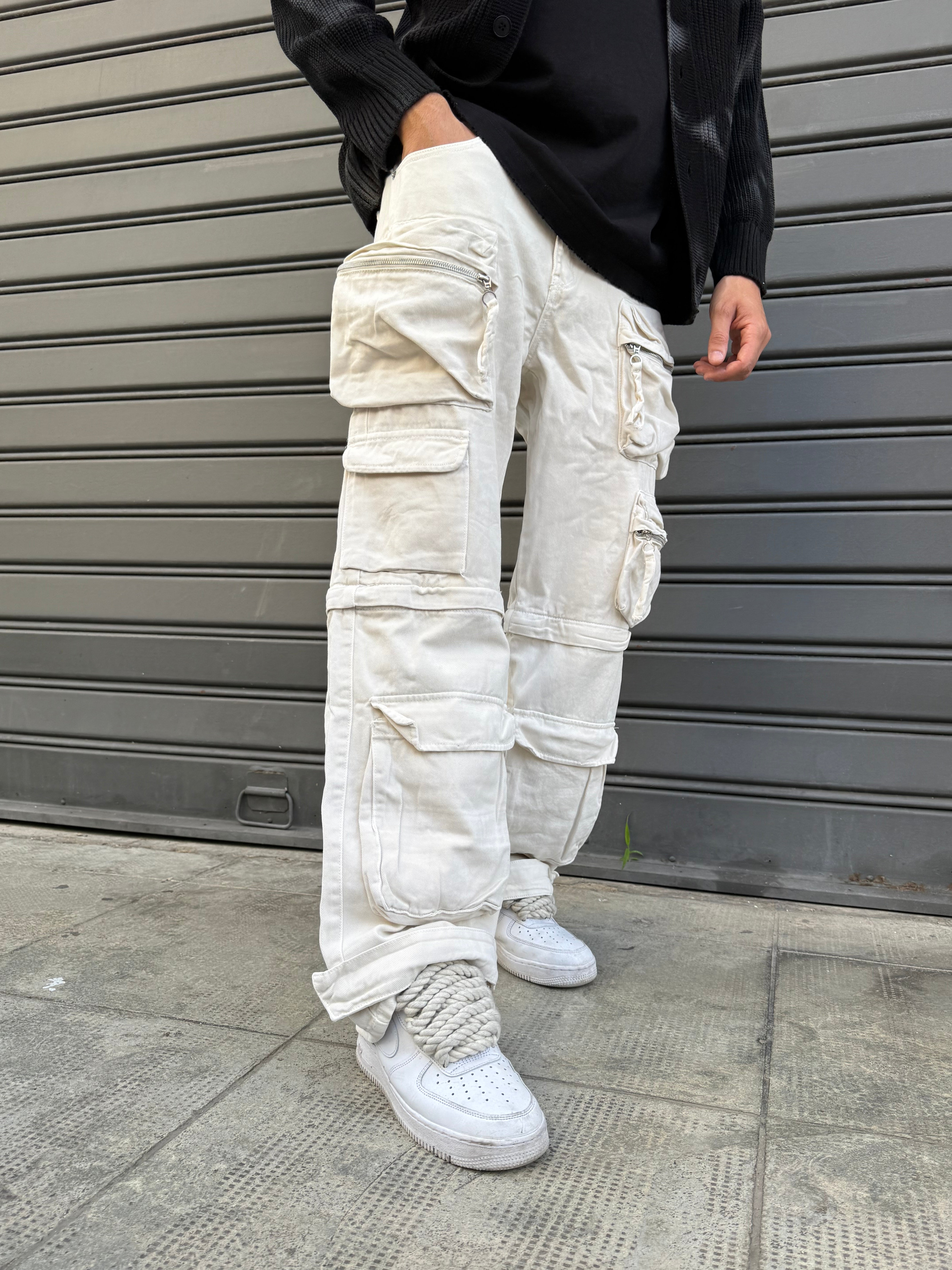 Jeans cargoo removable panna